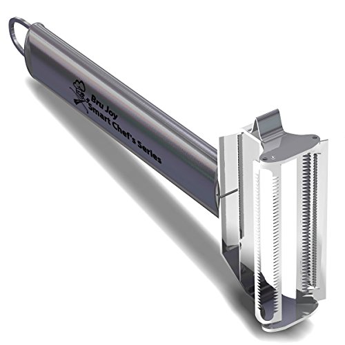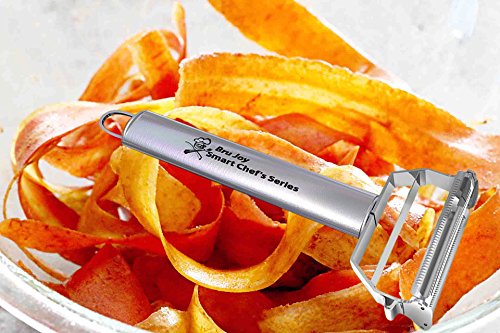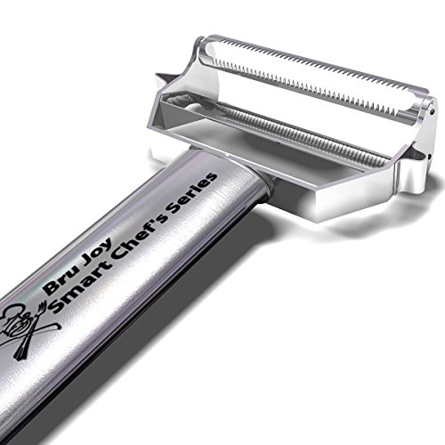 ULTRA-SHARP DUAL BLADE JULIENNE PEELER: Julienne and Vegetable Peeler 2-in-1. Made of top quality stainless steel and designed with ultra-sharp dual blades, the Bru Joy vegetable julienne peeler is strong, sturdy & super-easy to use. An essential kitchen tool, the peeler lets you create professionally julienned vegetables and healthy vegetable spaghetti, zucchini pasta or zoodles in seconds.