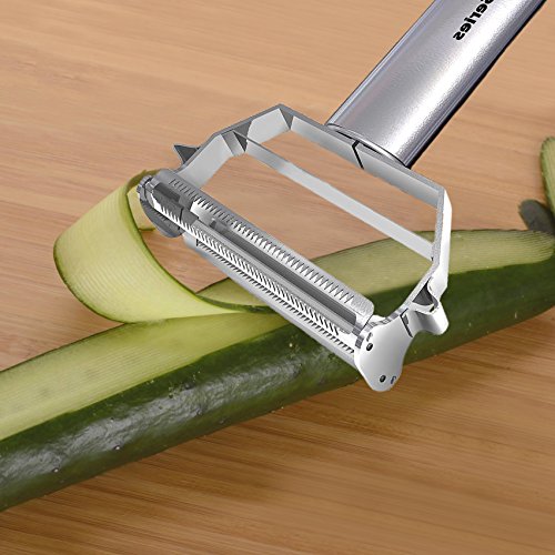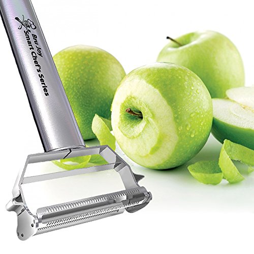 DISH-WASHER SAFE: THE ONLY PEELER YOU NEED IN YOUR KITCHEN. Thanks to our unique design, you now can create zoodles, peeled, slice or julienned vegetables & fruits that any professional chef would envy. Multi-functional, strong, sturdy and easy to use, the Bru Joy Julienne Peeler offers you great value for money.