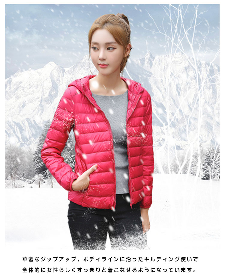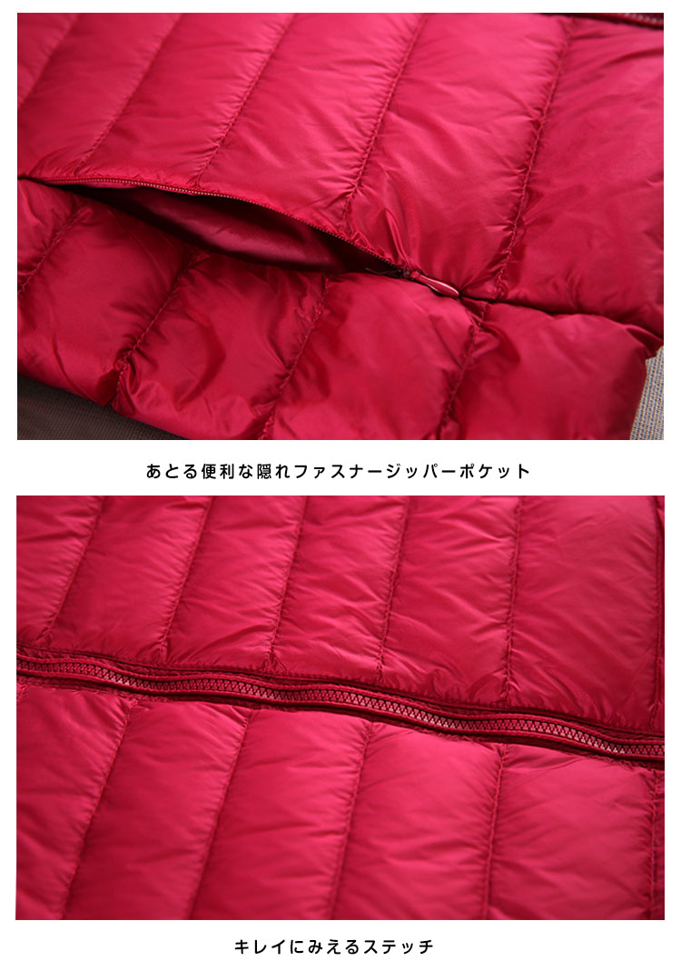 | ウルトラライトダウンジャケットが今年も新色追加で再入荷♪軽くて薄くて暖かくて柔らかな着心地、色々なシーンで使えて便利!華奢なジップアップ、ボディラインに沿ったキルティング使いで全体的に女性らしくすっきりと着こなせるようになっています。軽量ながら保温性にも優れた、使い回し抜群な一着です。 | |