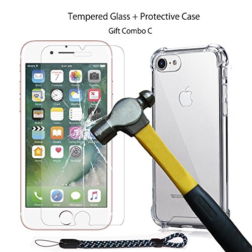 -. Title : BACAMA Premium Tempered Glass Screen Protector for Apple iPhone 7 with Shock Absorption TPU Clear Protective Case Hand Strap Gift Set