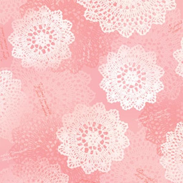上品なピンクに重ねられた美しいレース柄を暖かみのある上質紙に印刷した包装紙です。女性に好まれるデザインで、結婚祝いや内祝いに最適です。