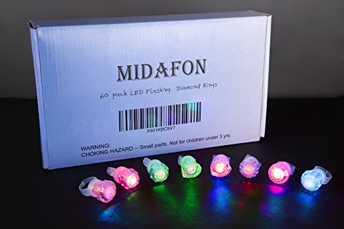 Studio : Midafon Publisher : Midafon Binding : Toy Product Description Quite Eye-catching The Midafon flashing rings are ideal for adding excitement to any event. Experience the different bright colors for a night of multi-colored fun. One package will contain 60 rings, each ring flash between different colors (red, blue and green). These flashing rings are quite eye-catching in dark and great for themed parties, bachelorette parties, dance parties, outdoor events, and holidays.