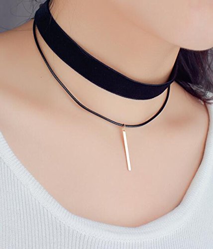 Venusvi Fashion Fabric,Multilayer Black Velvet Choker Necklace for Girls and Women