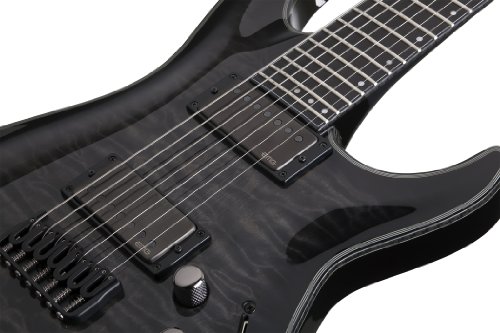 Studio : Schecter Guitar Research Publisher : Schecter Guitar Research Binding : Electronics Product Description Schecter is proud announce the debut of the much anticipated HELLRAISER HYBRID COLLECTION. A unique fusing of our infamous HELLRAISER and SLS models, the "Hybrid" will be just that a combination of the most sought after features of both! The Hell raiser"s signature highly figured quilted Maple top is now redesigned with a more sculptured arch and is set into the Mahogany body with an increased upper access cutaway. All HH models will be finished in High Gloss Transparent Black Burst. You asked, we listened. This collection is armed with EMG"s 57/66 Active hum-buckers, with Brushed Black metal-works covers. The HH C-7 and C-8 versions also use USA made Hipshot Non-Trem bridges to accommodate progressive playing designs. Schecter Locking tuners and Graphtec black Tusq nuts are standard on the non-FR versions. The SLS shares its popular thin, fast neck profile and satin finish. The compound radius ebony fiberboard is adorned with an "inverted" dot pattern; switching to the treble side at the 15th fret. The Metal Cross, synonymous with the Hell raiser sits proudly at the 12th fret. A newly designed "Carbon fiber" binding and glow-in-the-dark side dots (great for low light live situations) add the 2014 Hell raiser Hybrid"s "classic-metal" look. 0