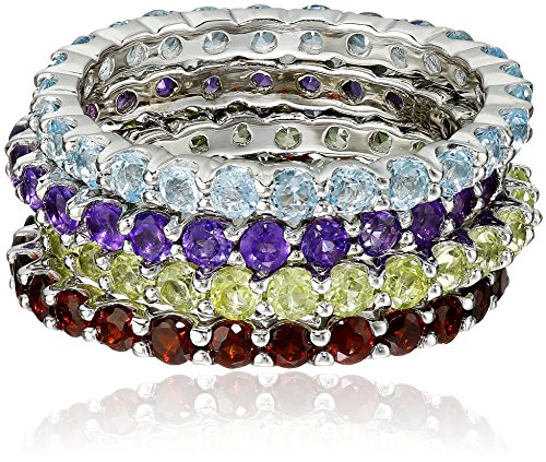 Set of four eternity band gemstone rings in Sterling Silver