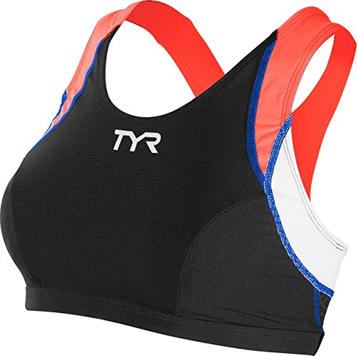 TYR Female Competitor Triangle Bra, Black/Coral/Blue, X-Large
