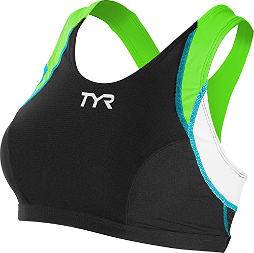 TYR Female Competitor Triangle Bra, Black/Green/Light Blue, Small