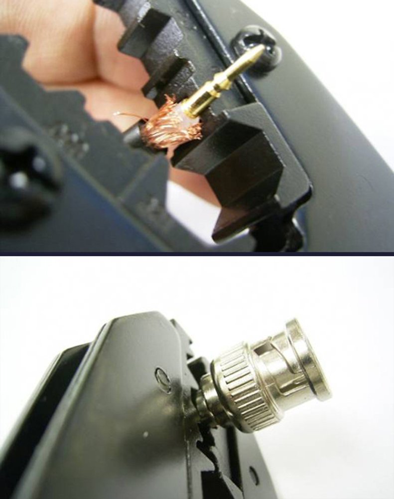 It is a special crimping tool that crimps coaxial cable and BNC / TNC / BNCC connector used in various fields such as surveillance system, security camera, television, measuring instruments, LAN, broadcasting equipment etc.