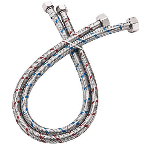 BWE 24" Length Faucet Connector, Braided Stainless Steel - 3/8" Female Compression Thread x 1/2" I.P. Female Straight Thread, x 2 Pcs (1 Pair)