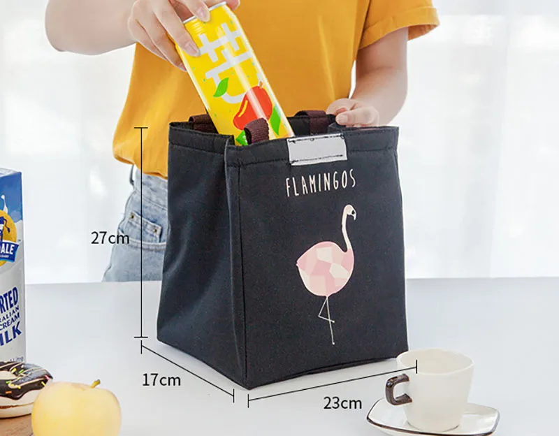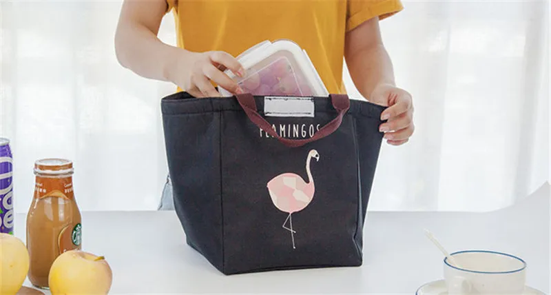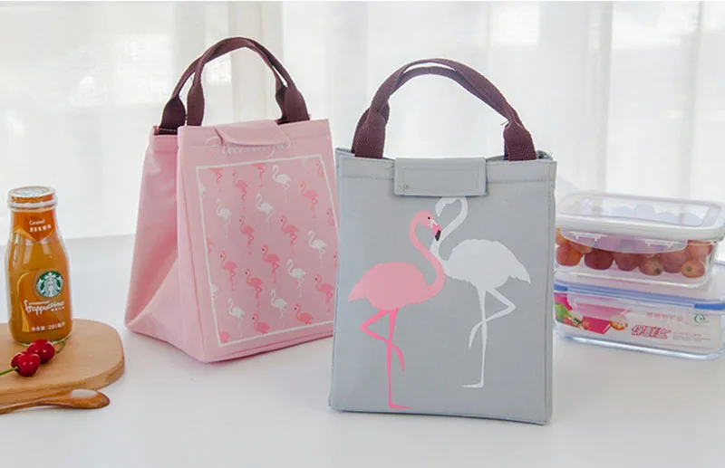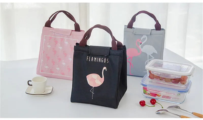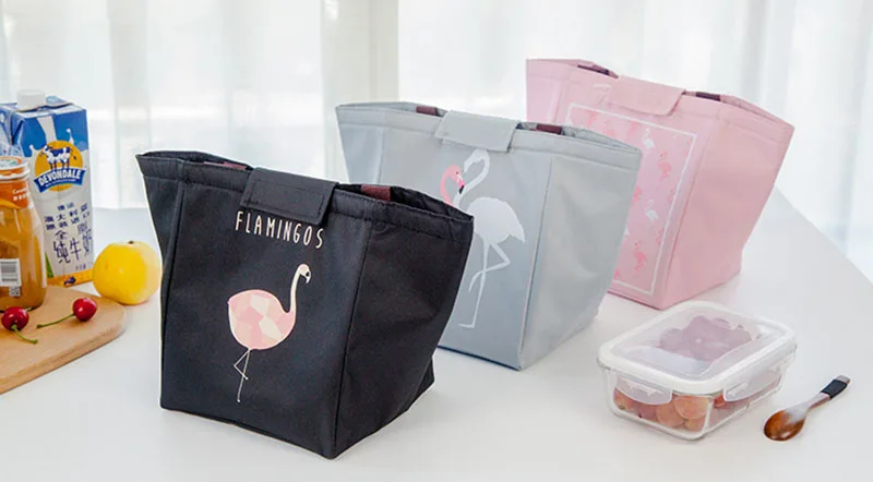 Description 3:3D Flamingo Print Thermal Food Picnic Lunch Bags For Women Lunch Bag