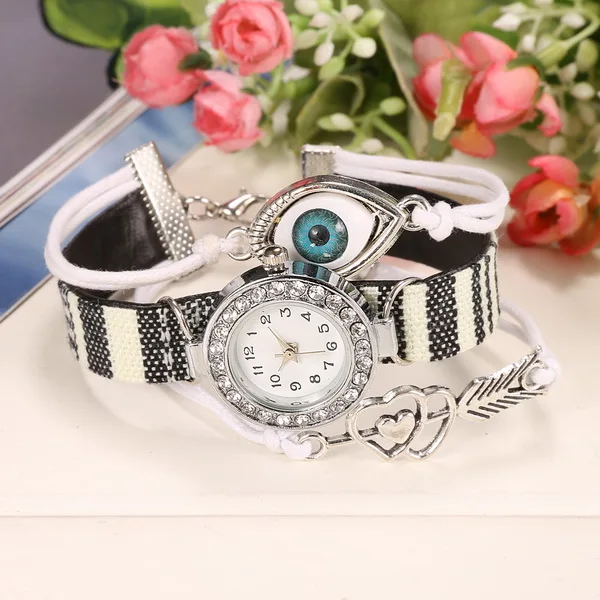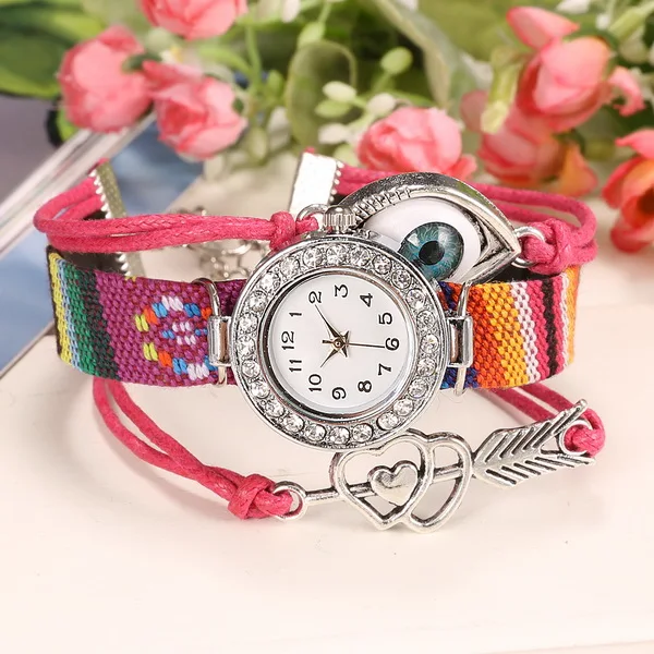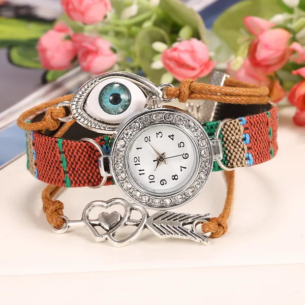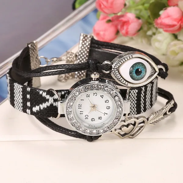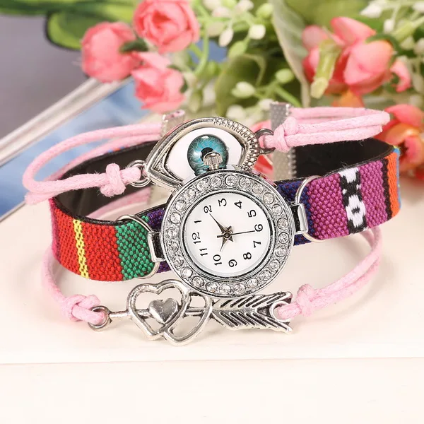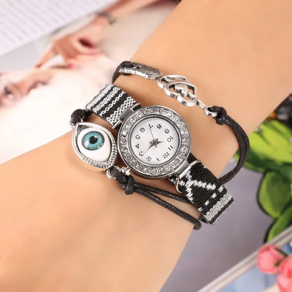 상품 내용 & #12288; 여성의 수제 우정 팔찌 시계 라인 석 라운드 쿼츠 손목 시계 다이얼 & #12288; 특징:
