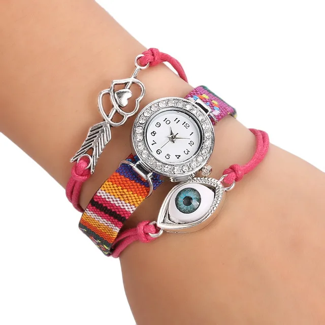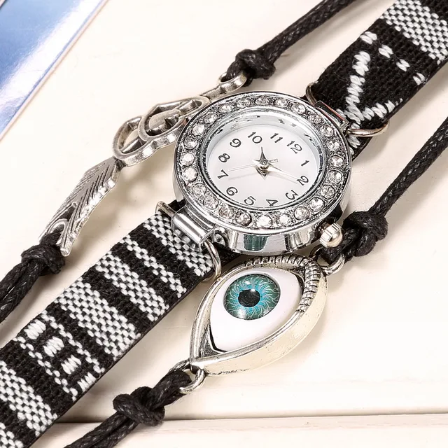 | [해외] FANALA 여성의 수제 우정 팔찌 시계 라인 석 라운드 쿼츠 손목 시계 다이얼 |