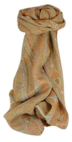 Muffler is the traditional name given in India to a particular style of long closely woven scarf, made from Kashmiri pashmina wool. Worn by both men women, mufflers were specifically designed to reduce bulk and to provide maximum warmth without restricting everyday activity. They are, therefore, extremely comfortable when worn for long periods of time with jackets or coats for work and everyday activities. Traditional Mufflers always have a fully reversible woven design in a complementary palette of colours. Each Muffler has a unique design based on the traditional heritage motifs of paisley or flowers. These same designs have been are passed down through generations of handloom weavers. Mufflers are a practical, attractive and flexible accessory. The process of hand weaving gives the fabric a soft texture that is deceptively hardwearing. Mufflers improve with age and the more they are handled and worn, the softer the fabric becomes. Our authentic Muffler is made from premium hand woven Kashmiri pashmina wool. It will not felt or sweat like heavy imitations made with fluffy, poor grade, mixed fibres or viscose. A true hand-woven Kashmiri Muffler looks immediately superior in texture and finish to imitation products that often rely on superimposed screen-printed patterns. Your scarf is supplied with FREE gift-wrap in attractive ivory tissue and presentational frosted bag along with a FREE message service. Warm to wear and easy care. Your scarf or stole should not require frequent cleaning. If you wish to freshen your item, dry clean it or gently hand wash the whole garment in cool soapy water. Never rub the fibres and always dry flat away from direct heat. When required use a cool iron. 0 |