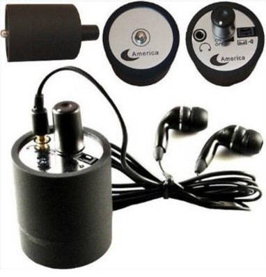 When you lightly press the piezoelectric microphone part of "Concrete Wall Mike Mini USB" against the wall, you can hear the echoed sound with the earphone.