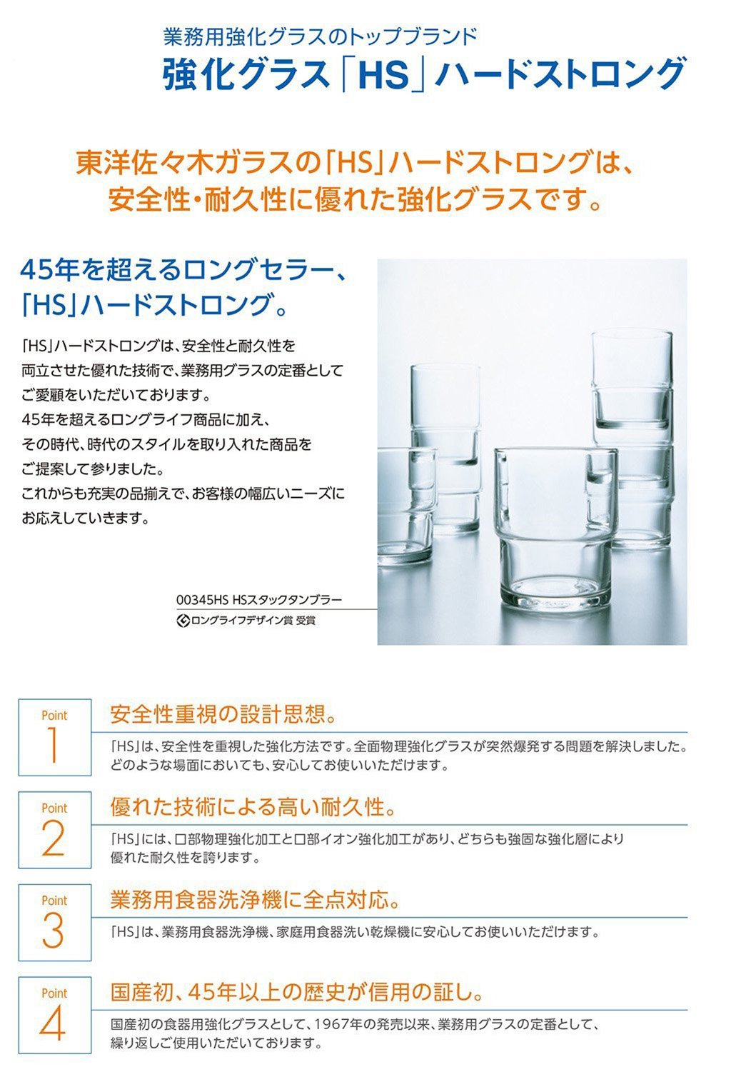 ● Toyo Sasaki Glass 'HS' (Hard Strong) is the top brand of reinforced glass for business