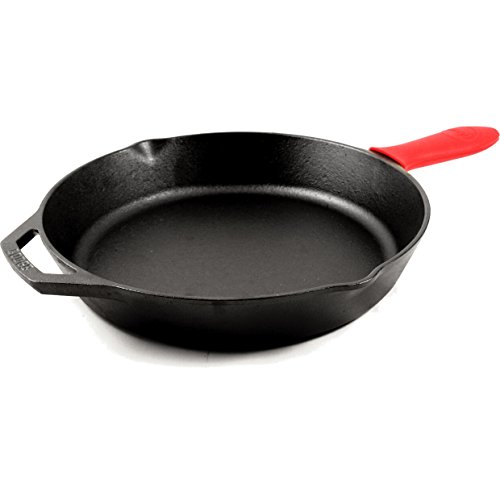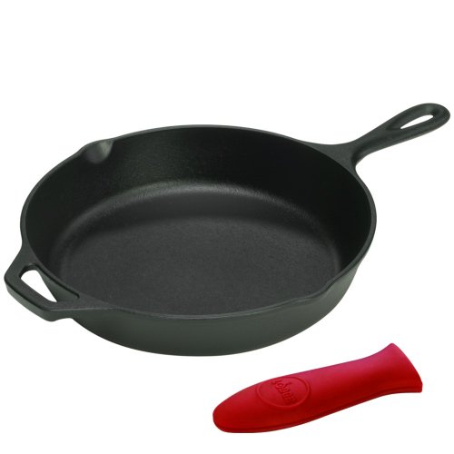 -. Title : Lodge Logic 12 Inch Cast Iron Skillet with Helper Handle and Free Red Silicone Handle Holder