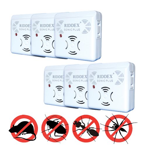 -. Brand : RIDDEX -. Color : white -. EAN : 0848296062568 -. Feature : Drives roaches and rodents away / Uses the wiring in your walls to keep your home pest free / No dangerous chemicals; safe for children and pets / Each has an outlet on the side (Set of 6) / Each covers approximately 1059 Square Feet -. Label : CloseoutZone -. Manufacturer : CloseoutZone -. MPN : E71650 P2 -. PackageQuantity : 1 -. PartNumber : E71650 P2 -. ProductGroup : Lawn & Patio -. ProductTypeName : OUTDOOR_LIVING -. Publisher : CloseoutZone -. Size : One-Size -. Studio : CloseoutZone -. Title : (Set/6) Riddex Sonic Plus Pest Repeller - Utrasonic Wave No Chemicals -. UPC : 848296062568