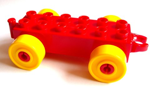 -. Title : L.E.G.O Duplo Auto Anhänger Stein 2x6 rot + gelbe Räder Eisenbahn