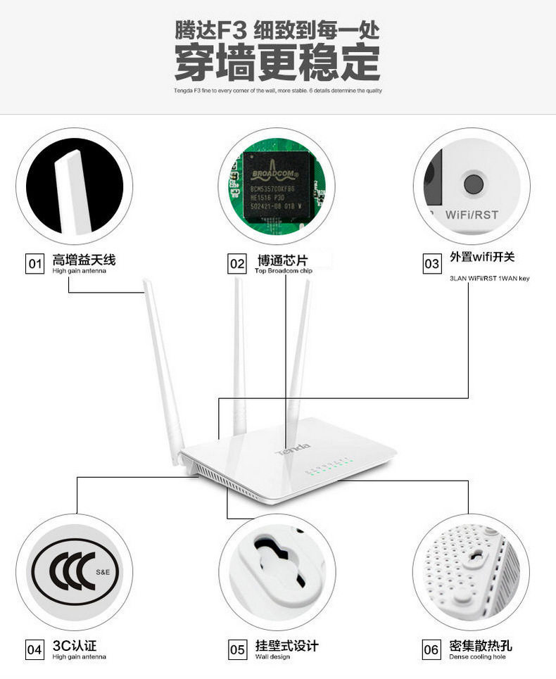 Tenda F3 300M wireless router through the wall Wang household broadband high-speed fiber optic WiFi