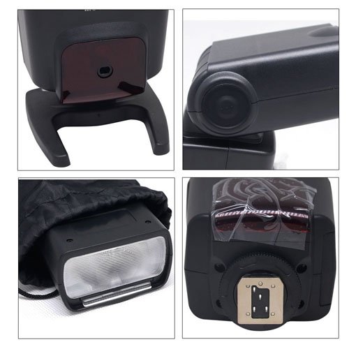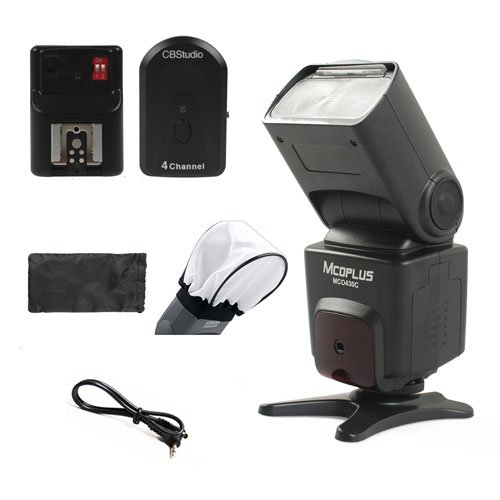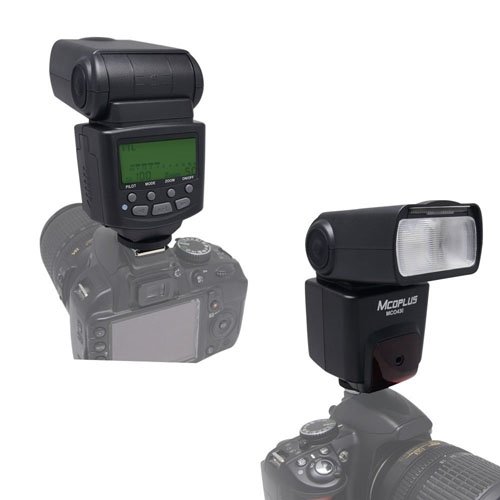 MCO-430C Flash: Guide NO. : 36 (ISO 100, 105mm); Flash mode : TTL, M, MULTI; Wireless triggering distance: 20~25m indoor, 10~15m outdoor; Power supply: 4 x AA size, batteries Lighting times: 100~1500 times