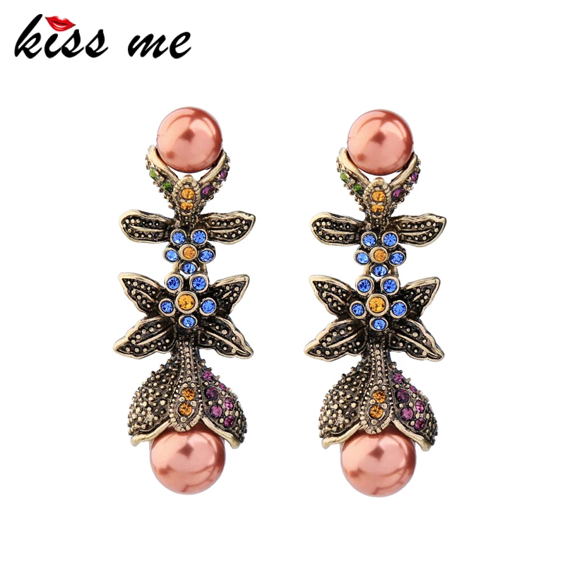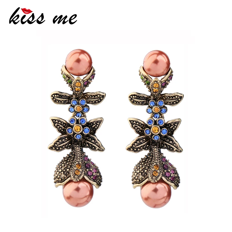 Production name ::KISS ME Luxury Imitation Pearls Crystal Flower Earrings