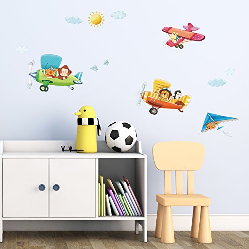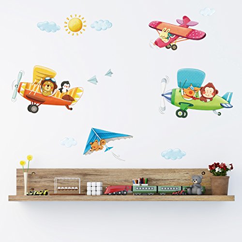 -. Title : Decowall,DMT-1506B,Animal Biplanes peel & stick Nursery wall decals stickers