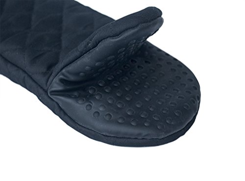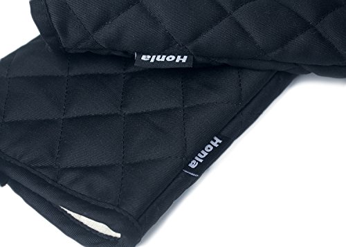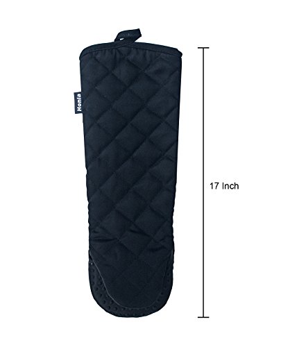 17-Inch Extra Long Oven Mitts with Non-Slip Silicone Grip - Heat Resistant to 500° F,1 Pair of Kitchen Oven Gloves for Cooking,Baking,Grilling,Barbecue Potholders,Black - Honla