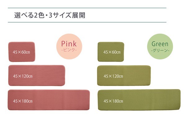 【商品名】キッチンマット 無地 『ランタン』 グリーン 約45×180cm 裏面滑りにくい加工