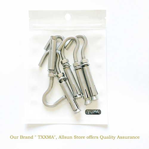 TXXMA Open Cup Hook Screw Heavy Duty 304 Stainless Steel Expansion Bolts Hooks 5-pack M6