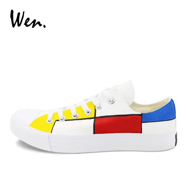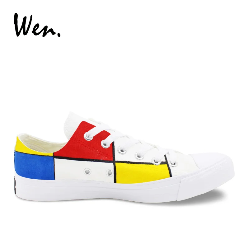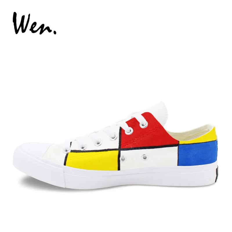 Pattern:Mondrian hand painted shoes low top canvas sneakers