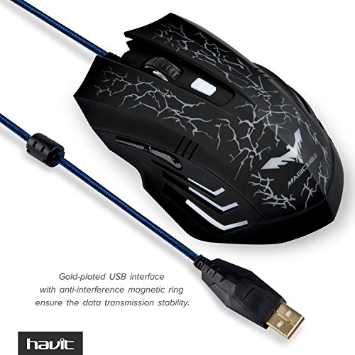 HAVIT HV-MS672 Ergonomic LED Wired Mouse with 7 Soothing LED Colors, 6 Buttons