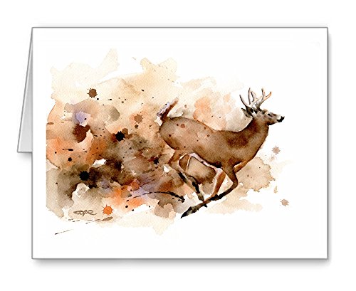 -. Feature : "Whitetail Buck" artwork by watercolor artist DJ Rogers. / Note card size is 4.25 x 5.5 inches / Matching white envelopes included. / Note cards are blank inside for your personal message. / Suitable for framing.