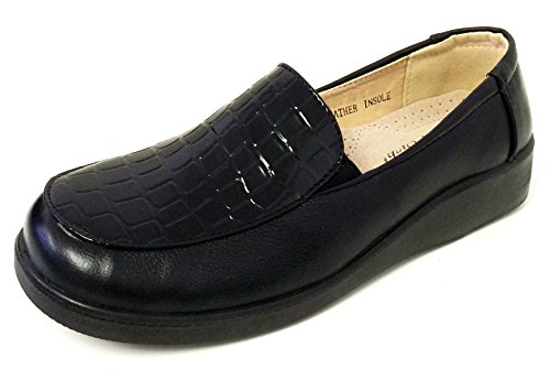 J-WD113 Women's Comfort Loafers Hotel Restaurant Alligator Print Walking Gores Slip on Slip and...