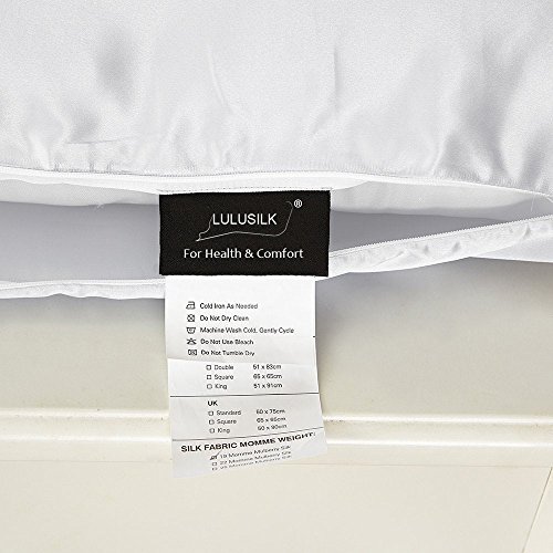 LULUSILK 19 Momme 100% Pure Mulberry Silk Pillowcase Both Sides Natural Silk Pillow Cover for Hair and Skin Anti Wrinkle Zipper Closure Queen Size Ivory/Natural White 1pc