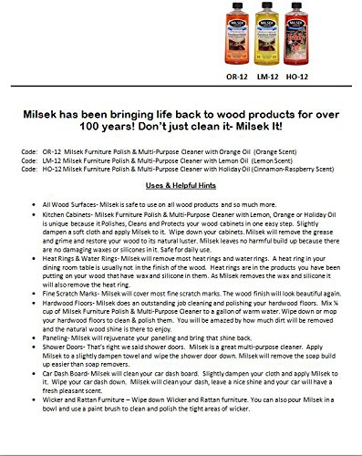 Milsek LM-12 Furniture Polish and Cleaner with Lemon Oil, 12-Ounce