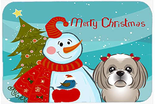Caroline's Treasures BB1870LCB Snowman with Gray Silver Shih Tzu Glass Cutting Board, Large, Multicolor