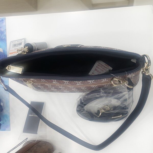 F/W 가을신상품으로 PVC패턴과 브랜드의 아이덴티티가 돋보이며 가벼운 보강제를 사용 가볍게 연출할 수 있는 미니 숄더백 중앙의 가죽띠가 깔끔한 고급스런 화사함까지~~~ 포인트백으로 적당!
