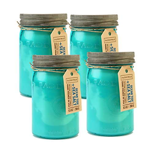 Paddywax Candles Relish Jar Collection Candle, 9.5-Ounce, Aqua Ocean Tide & Sea Salt - Set of 4