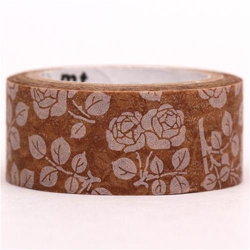 -. Feature : brown Washi Tape with rose design and wax coating / length: 3m (3.2yards), width: 1.5cm (0.6") / by mt, import from Japan / bright and vividly coloured, very beautiful design / writeable, tapes are detachable, can be torn off by hand and are reuseable