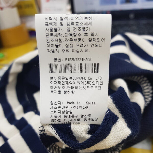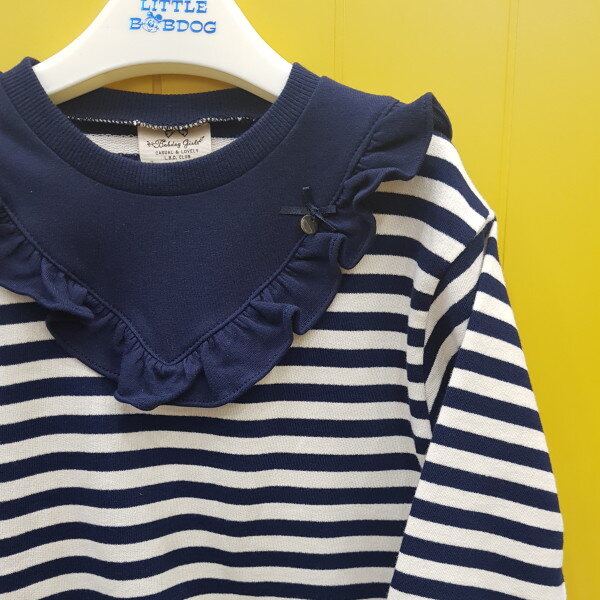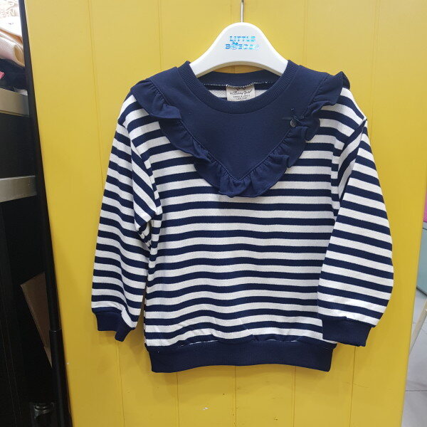 스트라이프 프릴 티셔츠입니다. 청바지 면바지에도 코디 하기 쉽습니다.