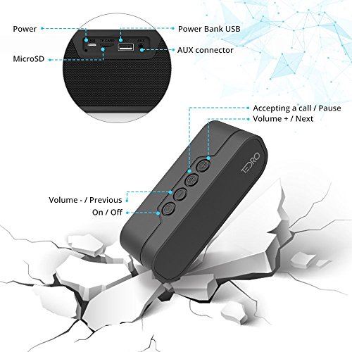 Studio : TEDRO Publisher : TEDRO Binding : Electronics Product Description TEDRO NX-4017F has 20W stereo output and offers you a powerful sound even if you want to listen to a low volume for ambience or at a high volume to party and dance. Being shockproof waterproof you can use it for an BBQ pool party outdoor or just play a song while you're in the house. Being portable you can take it wherever you go without needing a power source for up to 12 hours and also charge your phone by using the speaker's power bank Our company started as a family business. That's why all of our relationships are based on three features found in every family: Trust, Responsibility and Respect. Music is what keeps our soul alive, burning for new memories. So let's dance a little, laugh a little, live a little more. Our speaker is just a small push to help you find your life's soundtrack, for music is the only language we all understand, Gift Package includes - TedRo NX-4017F Portable Bluetooth Speaker - Micro USB Cable - 3.5mm Aux Cable - Users Guide - Warranty card 0