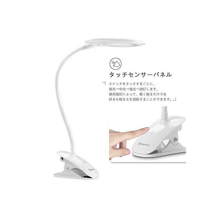 원본상품명: Mospro 目に優しい 5W クリップライト 3段階調光 360°調節 USB充電PC作業仕事室書ランプ ホワイト
