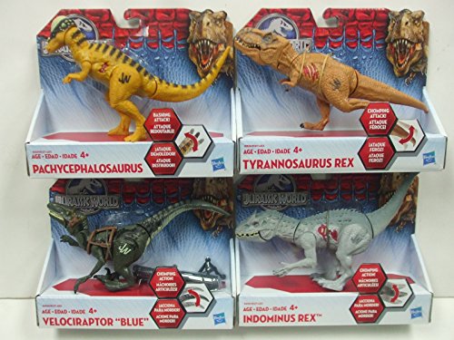 -. Feature : Jurassic World Bashers and Biters Dinosaur Figures Set of 4 Dinosaurs- Wave 4 -15 -- This case of 4 individually packaged Jurassic World Bashers and Biters Dinosaur Figures includes: / Chomping VELOCIRAPTOR BLUE / Bashing PACHYCEPHALOSAURUS / Chomping TYRANNOSAURUS REX / Chomping INDOMINUS REX