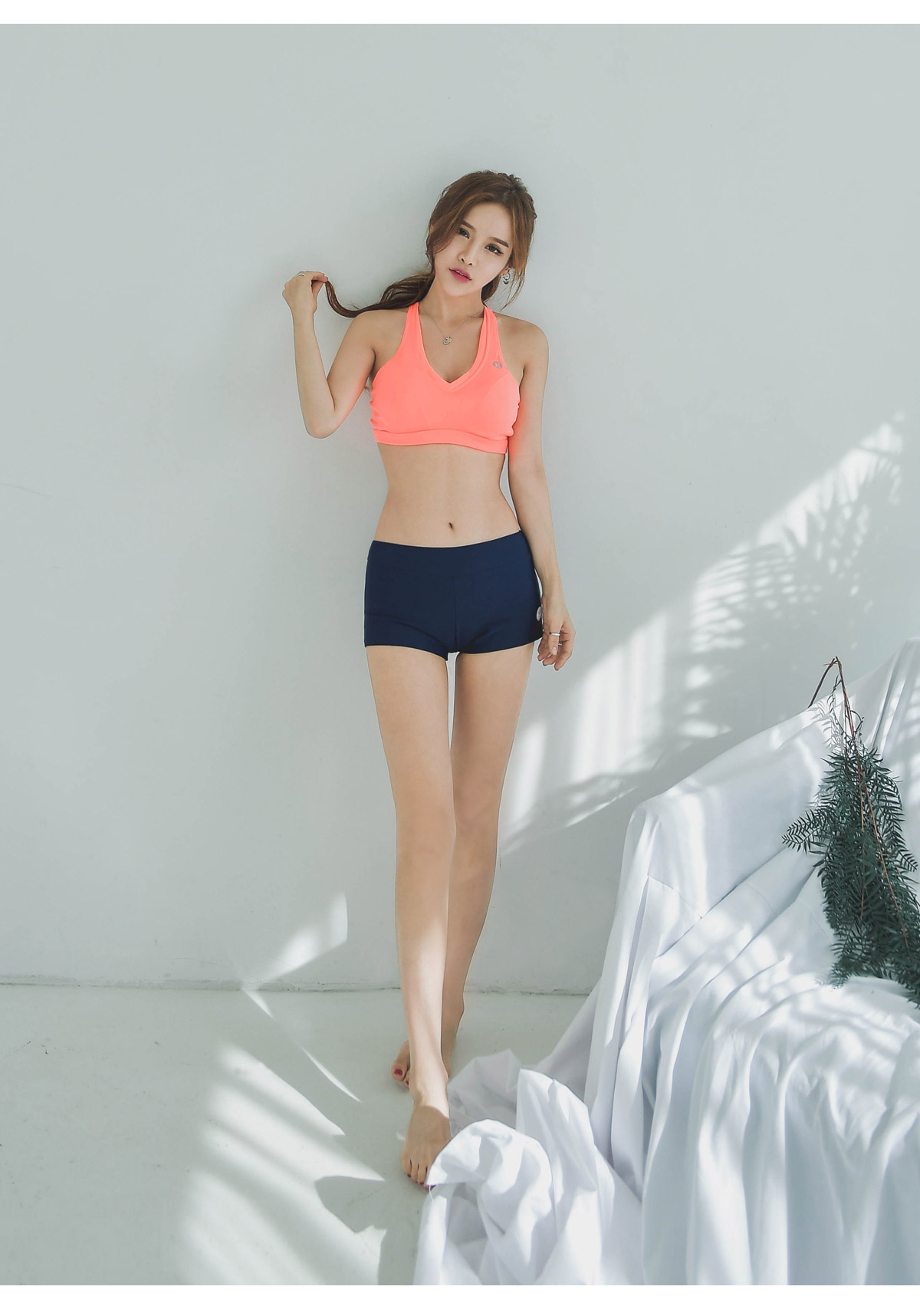 깊게 파인 브이넥이 바스트는 풍만하게,어깨선은 여리여리해 보이게하는 브라탑이에요.