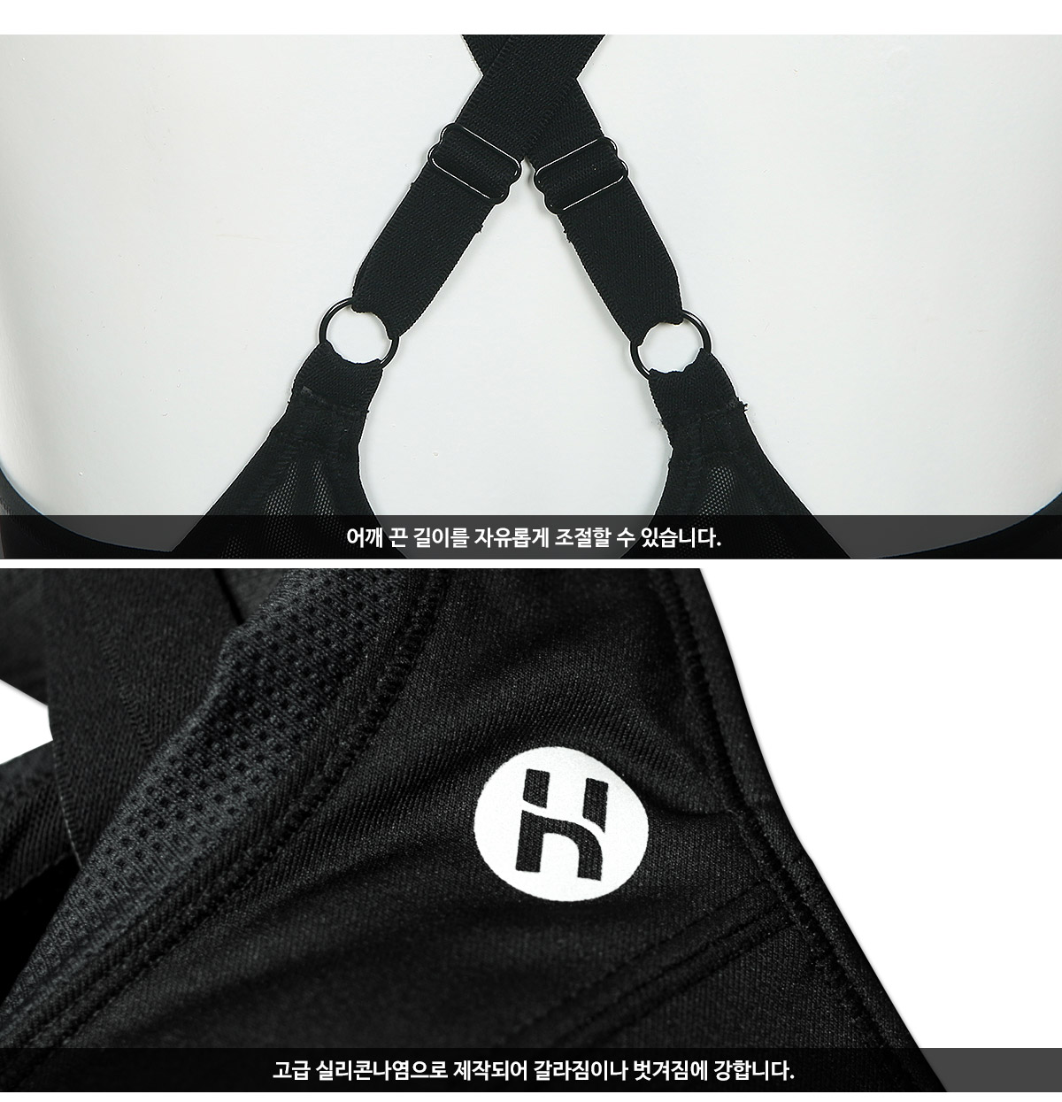 등은 X자로 되어있어 흘러내릴 걱정없이 착용가능합니다.