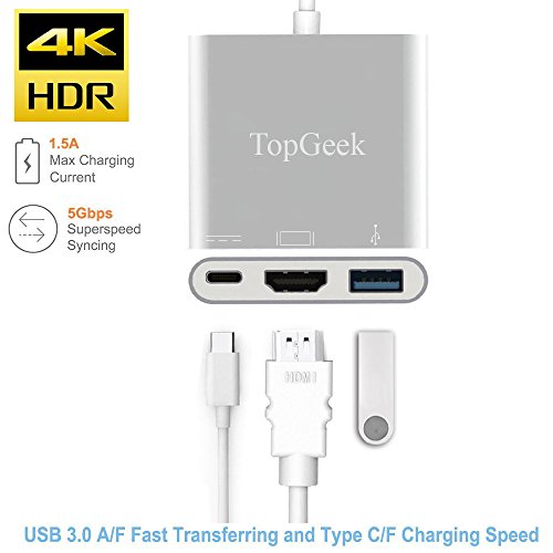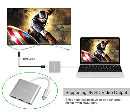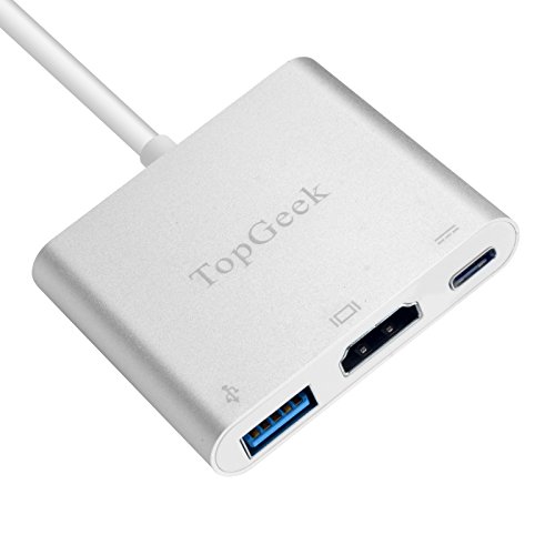 TOPGEEK USB C to HDMI 3-in-1 Digital Multiport Adapter USB 3.1 Type C with USB 3.0 Port and USB-C Recharging Port Aluminum Housing for 2016 MacBook Pro, Chromebook Pixel and More