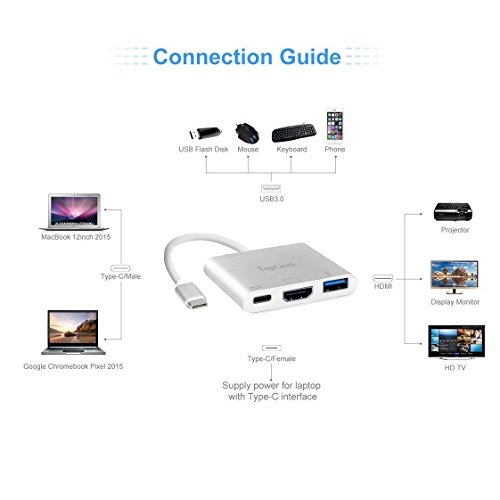 3-in-1 USB C Digital AV Multiport Adapter: Lets you connect your USB Type-C device such as a MacBook or ChromeBook to an HDMI display, while also connecting a standard USB device and a USB Type-C charging cable.