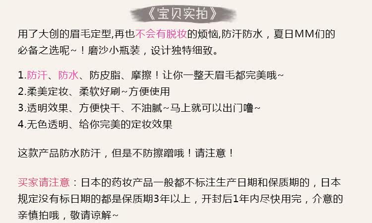 • 产品名称: 日本大创 无色透明眉毛定型液