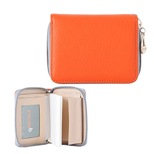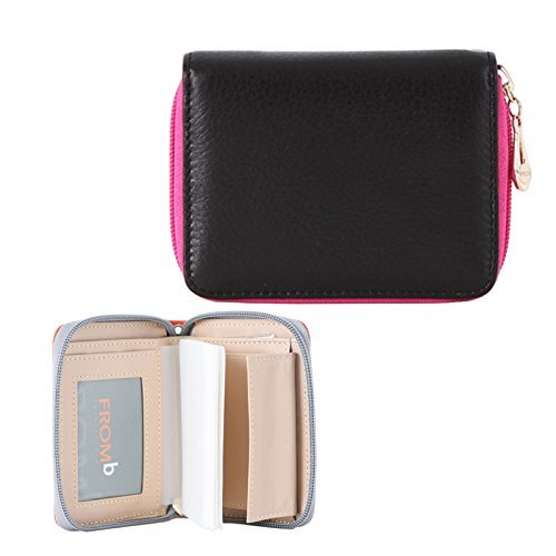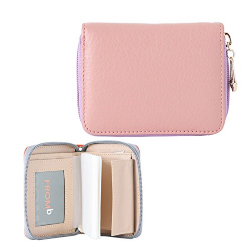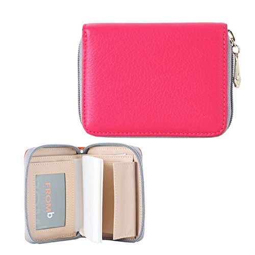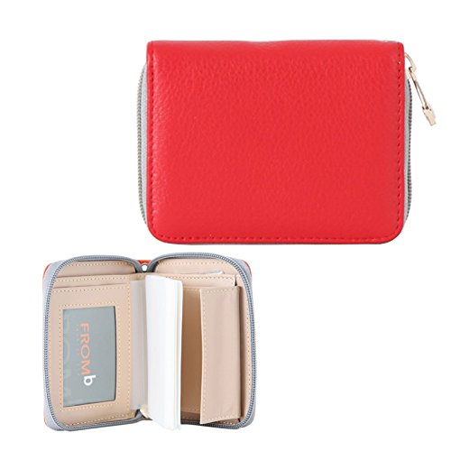 Womens Zip Around Genuine Leather Credit Card Case Organizer Compact Wallet Purse