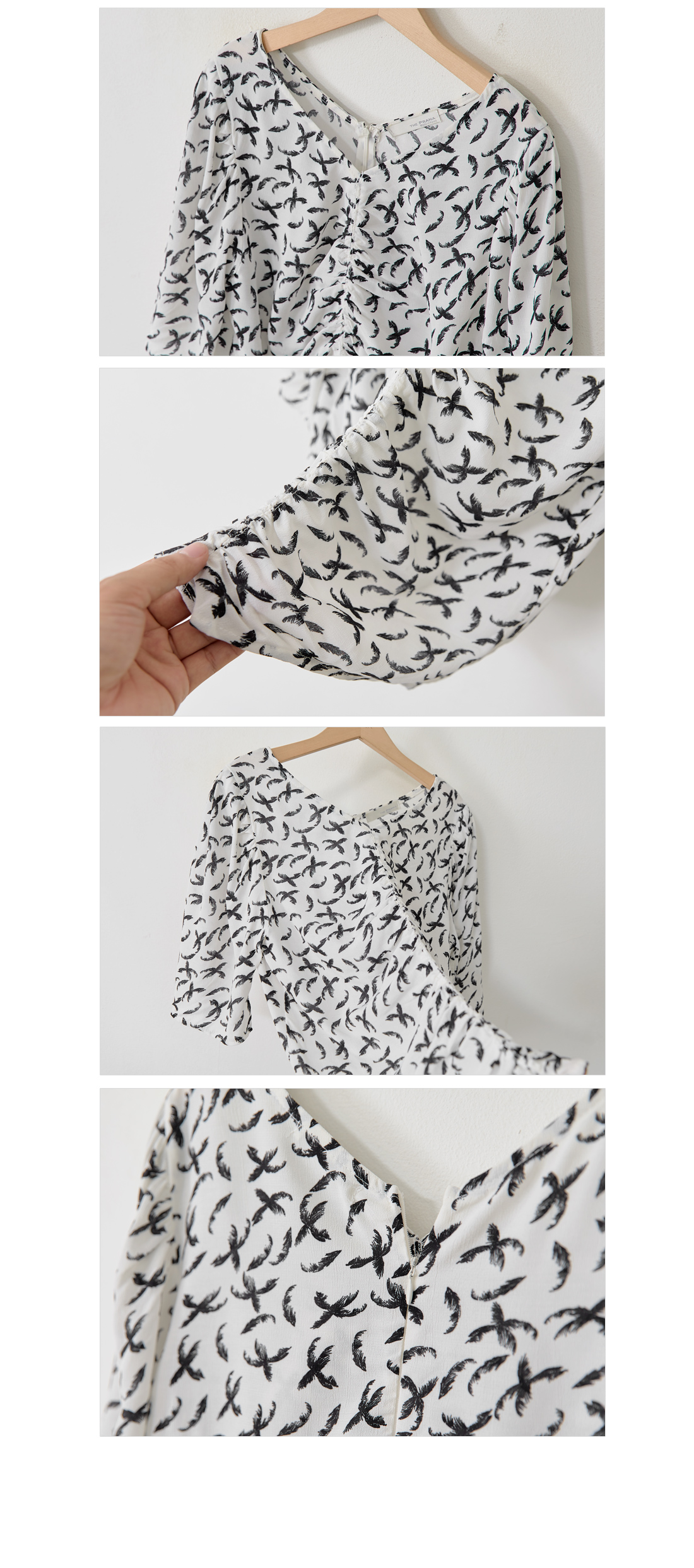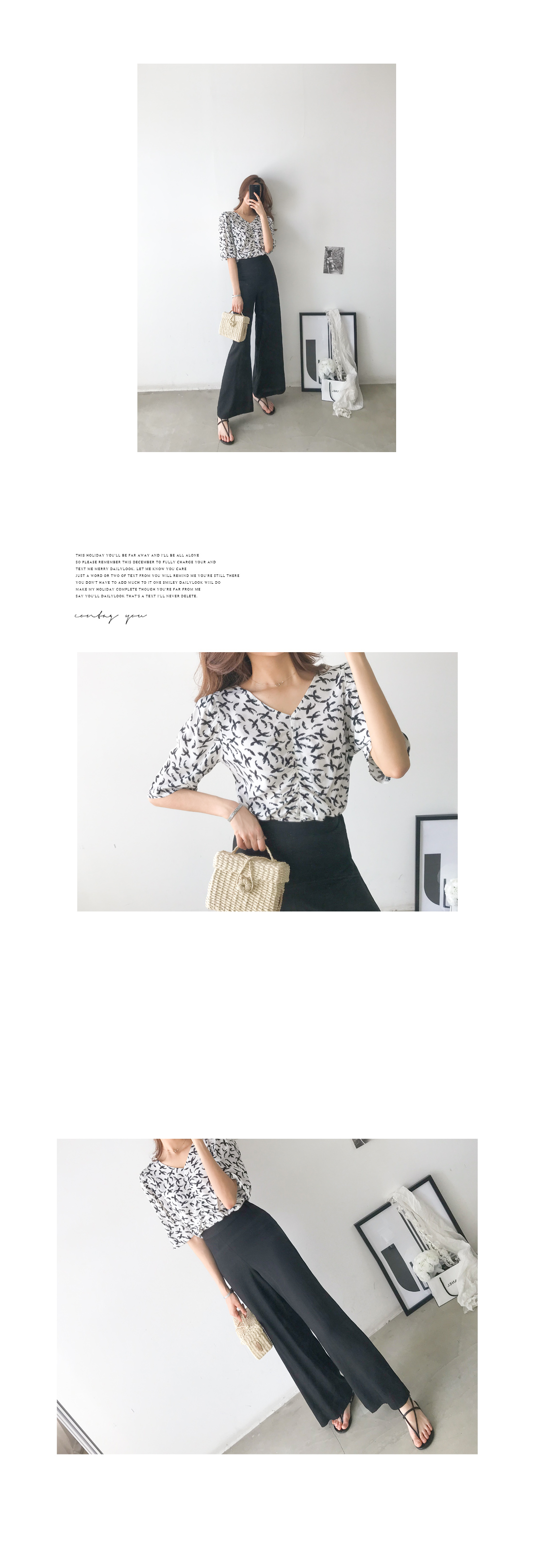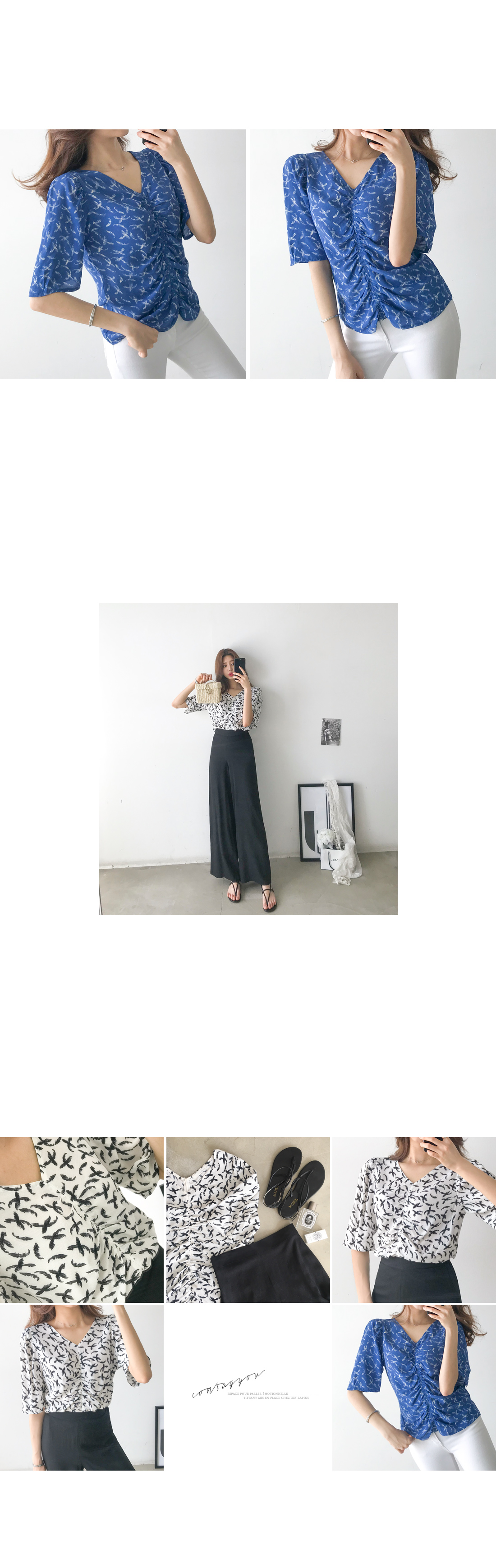 마치 한 폭의 그림같은 버드 패턴이 블라우스를 선명하게 가득 채워주어